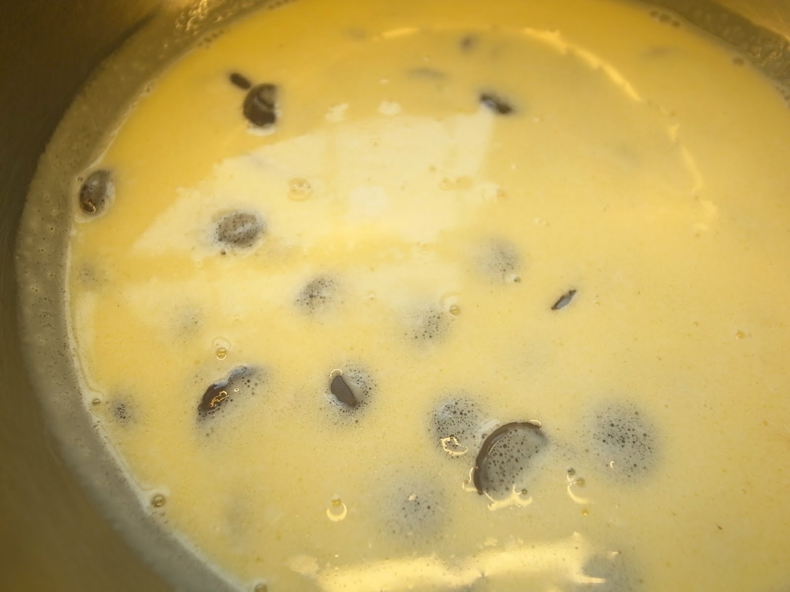 加熱牛奶的時候,順便加了綠檸檬皮和茴香 fennel增添雞蛋布丁的香味。